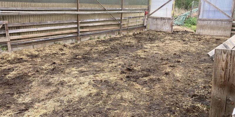 Das erste Gewächshaus ist jetzt voll bestückt mit Tomaten. Bis es soweit war, musste einiges erledigt werden: Nachdem alles geerntet war, was als Frühjahrskultur im Haus wuchs, haben wir den Boden gehackt und somit Beikrautreste entfernt. Als nächstes mussten wir von unserem Schafsmistkom...