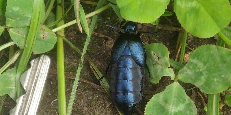 Ein seltener Gast war bei uns zu Besuch, der schwarze Maiwurm. Ein ganz schön großer Käfer. Ich habe euch ein Bild mit Haustürschlüssel als Größenvergleich gemacht.
