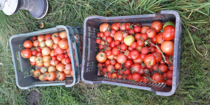 Erst kleine Gurken und grüne Tomaten geerntet, dann die Wurzeln aus dem Boden gerissen, die Pflanzen abgeknotet und auf den auf Mittelgebirgsgröße...