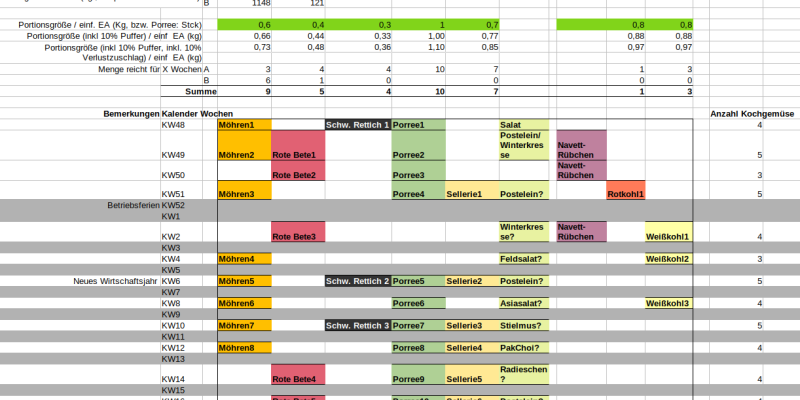 Wir haben die Ernte jetzt soweit sicher und erfasst, dass wir eine Abschätzung machen konnten, wie es reichen wird. Weil wir aus den vielfach erzählten Gründen diesen Winter unser angestrebtes Ziel der wöchentlichen Versorgung nicht erreichen (unten nochmal zusammengefasst),...